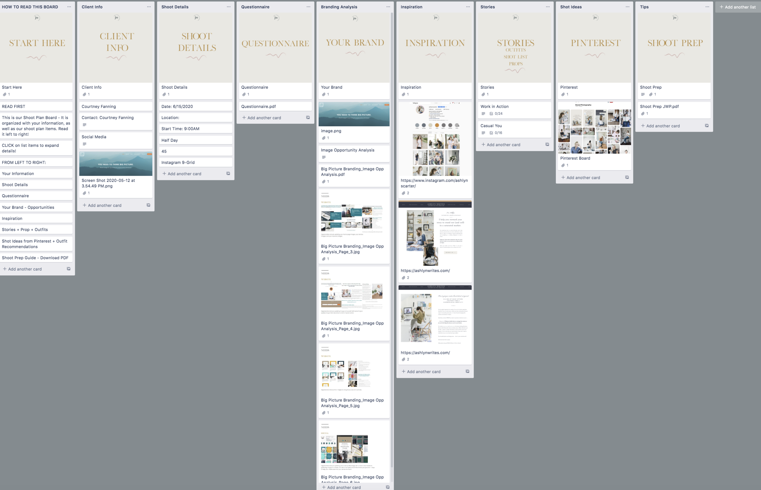 With this in mind, we walked through my shoot planning process together to create a plan on my Trello board. This included making a shot list for each story that would capture her in her home office - because you don’t always have to rent a space if your home works well with your brand! And we came up with a great solution to make her shoot more dynamic and pull the digital into the physical world.